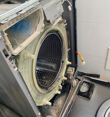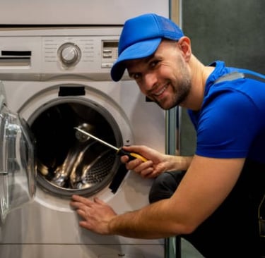 Serviços especializados para máquinas de lavar e secar, com técnicos experientes prontos para ajudar.